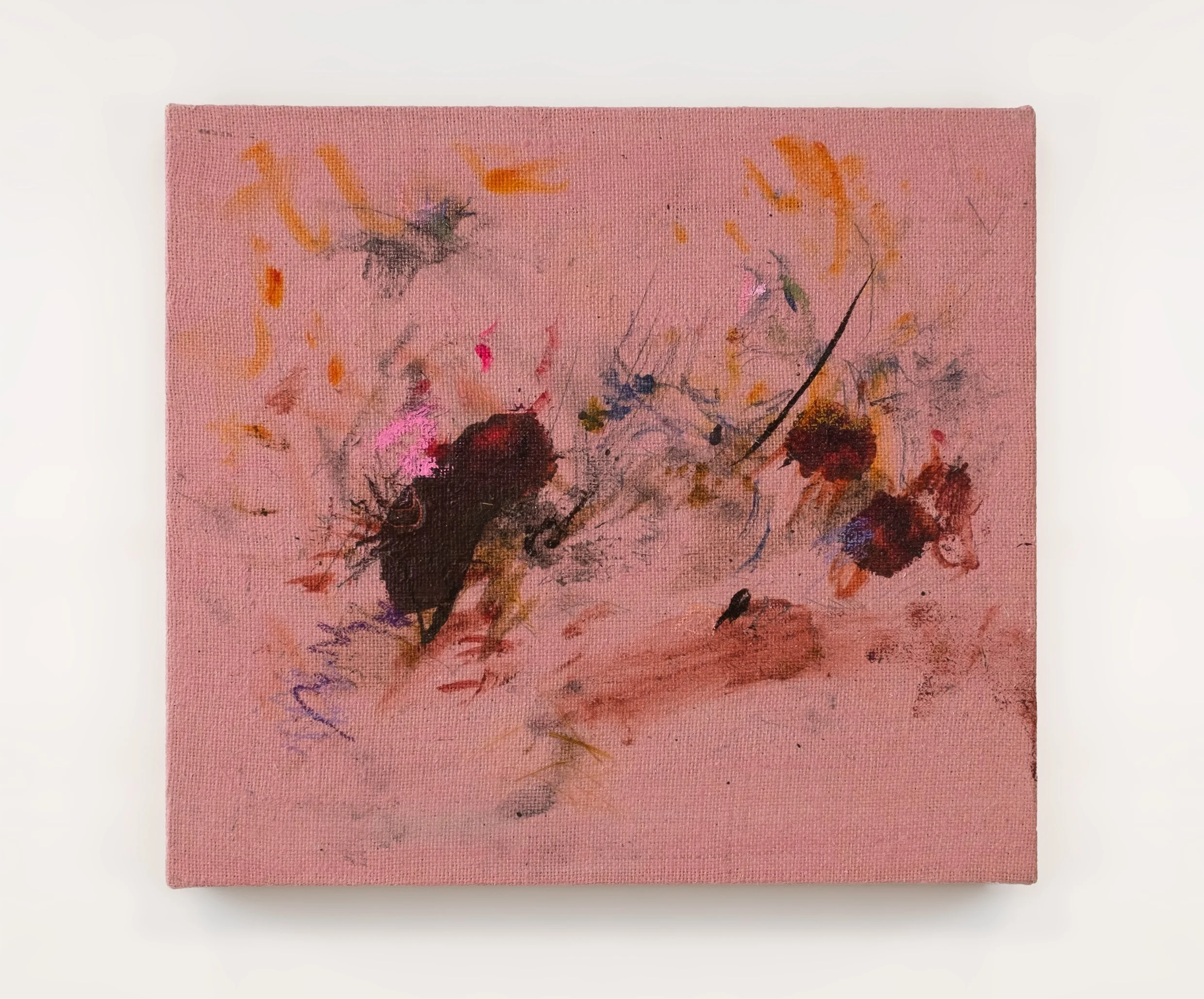 Acrylic paint, graphite, and oil paint on linen, 22 x 24 inches